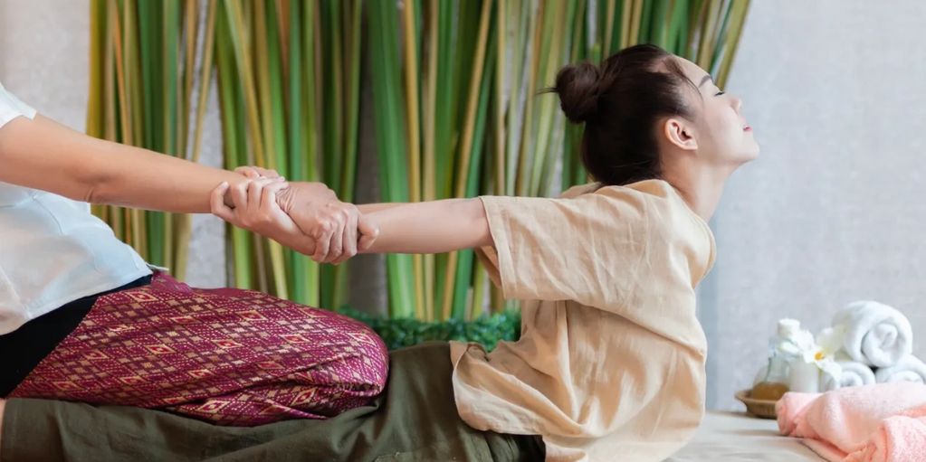 THAI-YOGA MASSAGE - A unique form of bodywork that combines acupressure, Indian Ayurvedic principles, and assisted yoga postures. It's a dynamic and interactive experience that involves stretching, compressing, and rocking the body to promote energy flow and relaxation.